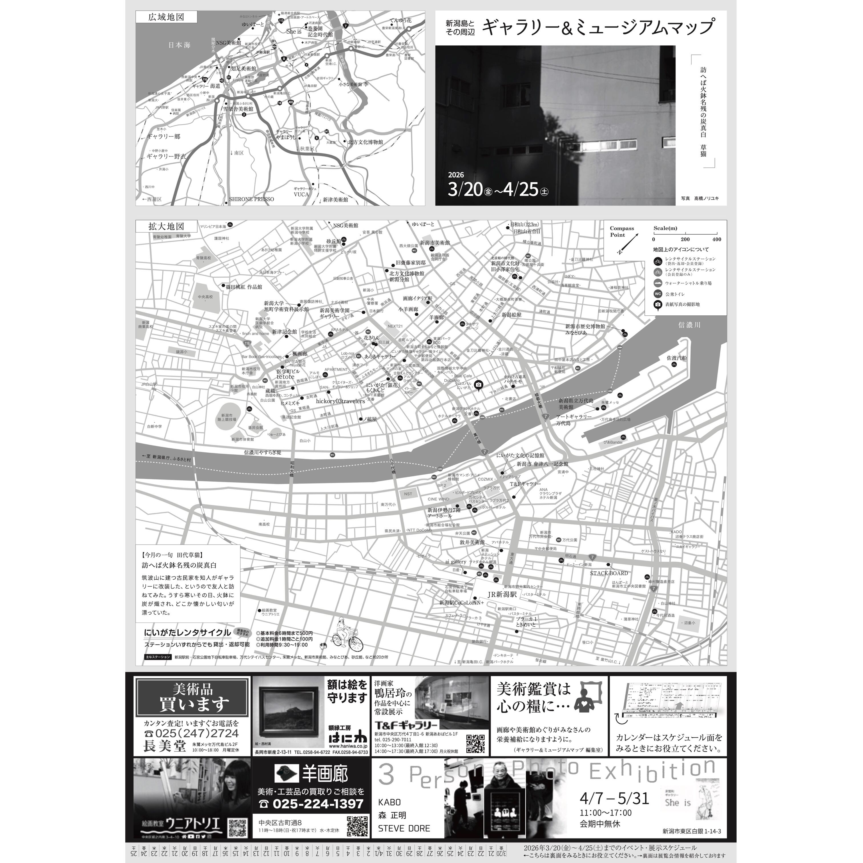 「新潟島とその周辺 ギャラリー&ミュージアムマップ」は、2008年創刊、毎月無料配布の展覧会情報紙です。